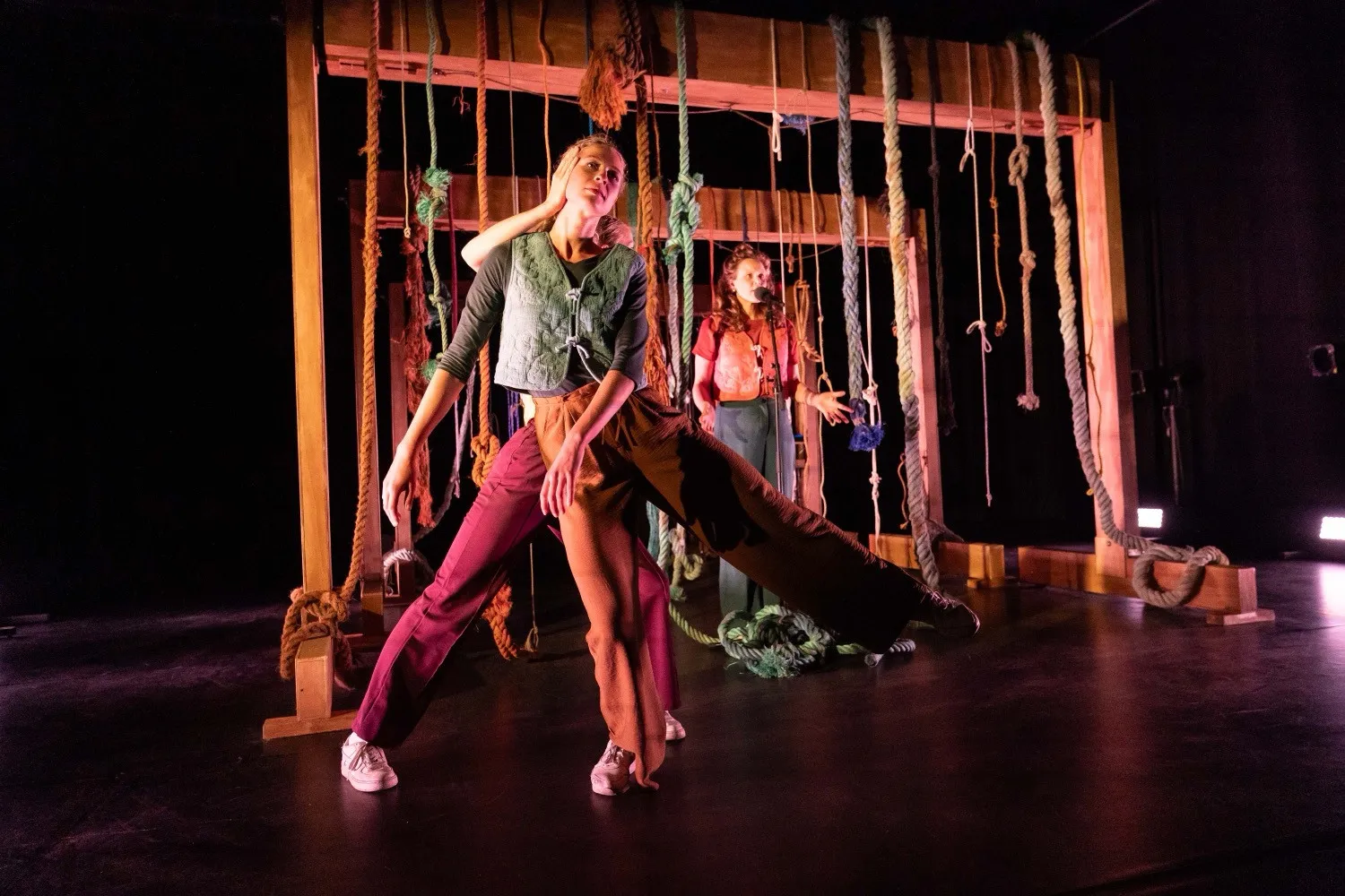 KNOOPPUNT is a music theatre and dance performance by KASSETT and DansBlok that dives into the phenomenon of muscle memory. Does the body keep the score? How does our rational memory relate to our bodily memories? What does your head know, and what does your body know? And which one is lying?